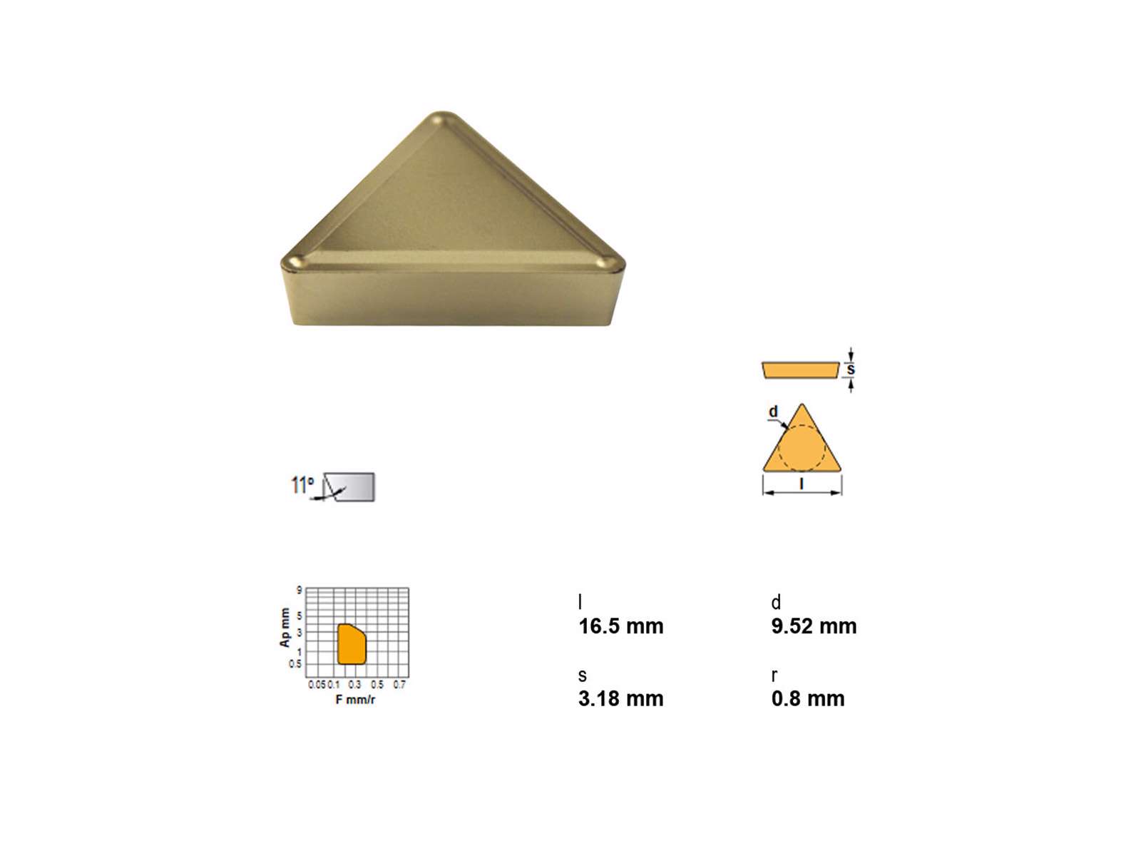 Canela TPMR160308TN15 er en trekantet drejeplatte med MR-geometri og TN15-overflade. Den er konstrueret til stabil og præcis bearbejdning af stål og sikrer optimal spånafgang ved medium til fin bearbejdning.