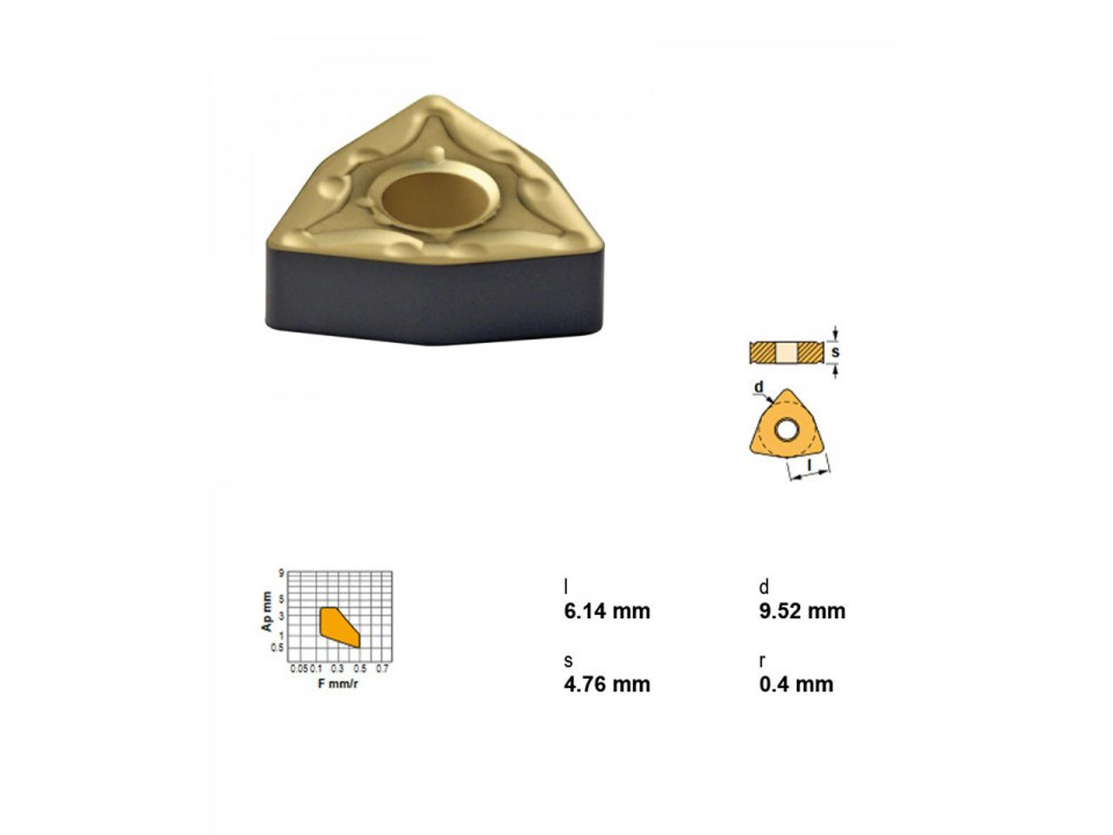 Canela WNMG060404MC-TN15 er en vendbar platte med MC-geometri og TN15-overfladebehandling, optimeret til drejning i stål. Den trekantede form og præcise dimensioner sikrer pålidelig ydeevne ved kontinuerlig og afbrudt bearbejdning.