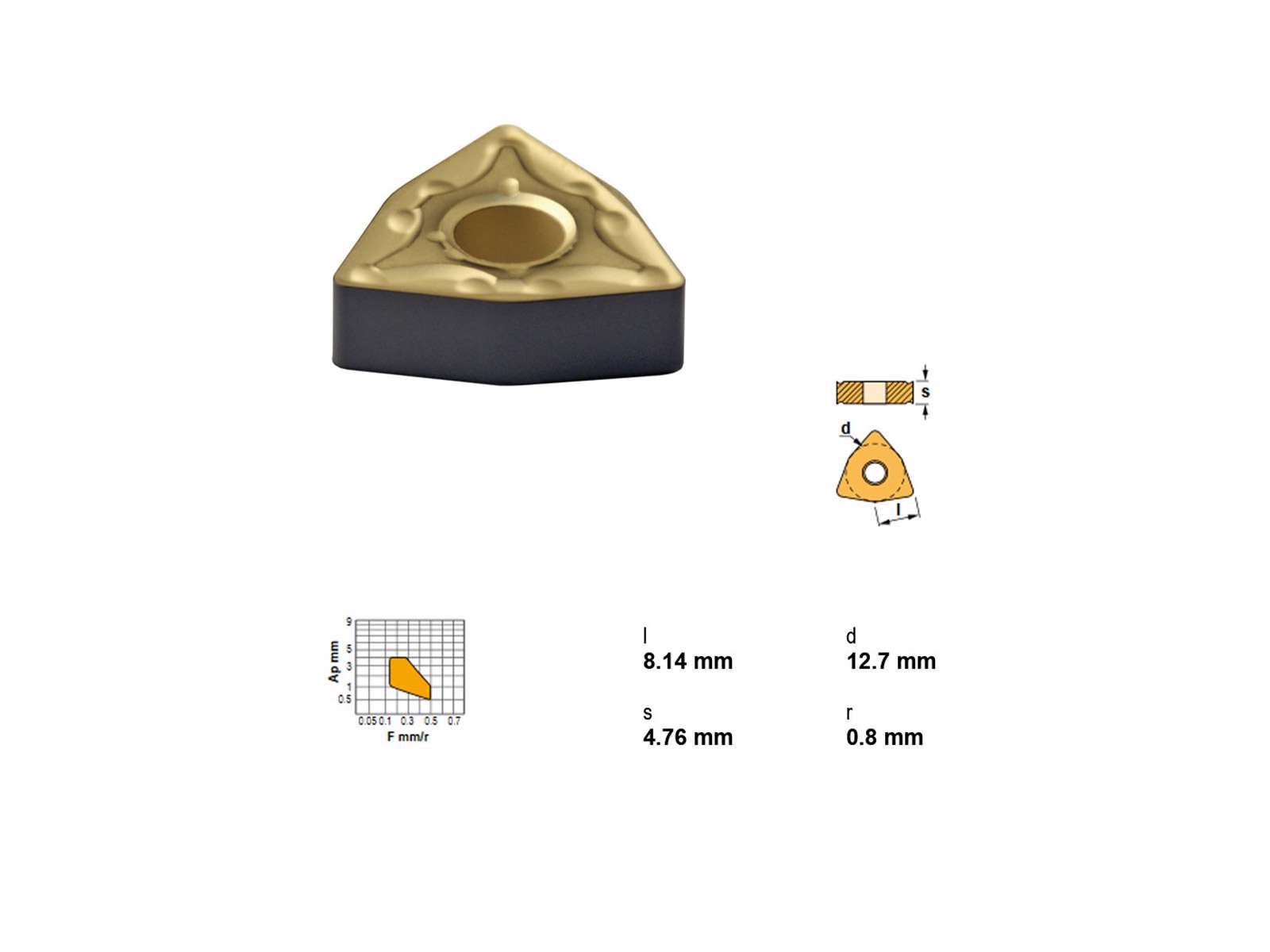 Denne WNMG080408MC-TN15 platte fra Canela er udviklet til effektiv drejning i stål. Den trekantede geometri med dobbeltsidede skærekanter giver god stabilitet og optimal spånkontrol ved kontinuerlig bearbejdning. TN15-overfladen sikrer høj slidstyrke og varmebestandighed.