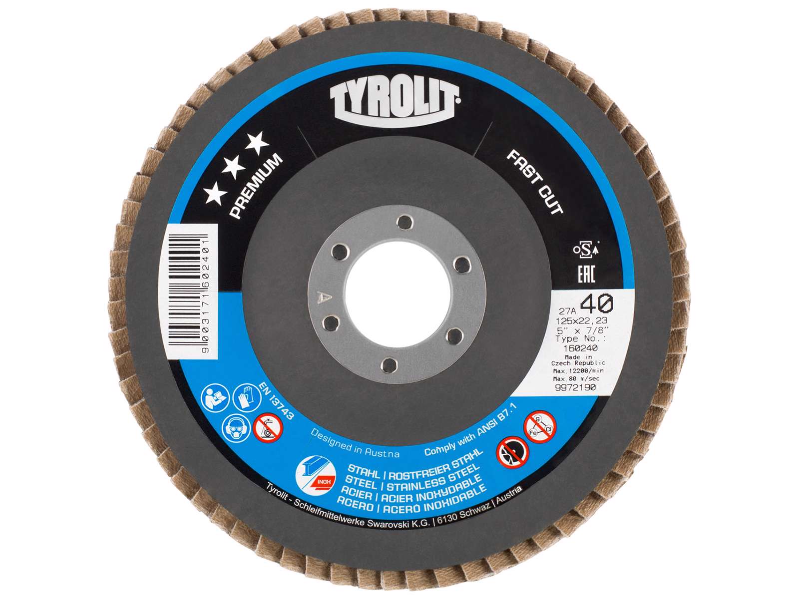 Tyrolit FASTCUT lamelskiven er et effektivt værktøj til krævende slibearbejde, såsom kantslibning og bearbejdning af svejsesømme. Den er velegnet til brug på både rustfrit stål, almindeligt stål og legeret stål. Skiven er lavet med en "Top-Size" belægning, der sikrer kølig slibning, hvilket reducerer risikoen for misfarvning af materialet og mindsker behovet for efterbehandling.