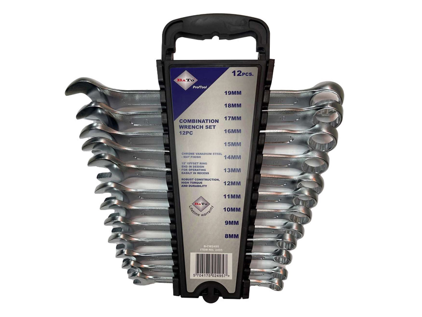 RINGNØGLE SÆT 8-19 MM MED HOLDER fra BATO er et værktøj af høj kvalitet, designet til præcisionsarbejde. Dette sæt består af 12 dele, herunder ringnøgler i størrelser fra 8 mm til 19 mm. Fremstillet i overensstemmelse med DIN3113A-standarderne, tilbyder disse nøgler optimal ydeevne og holdbarhed.
