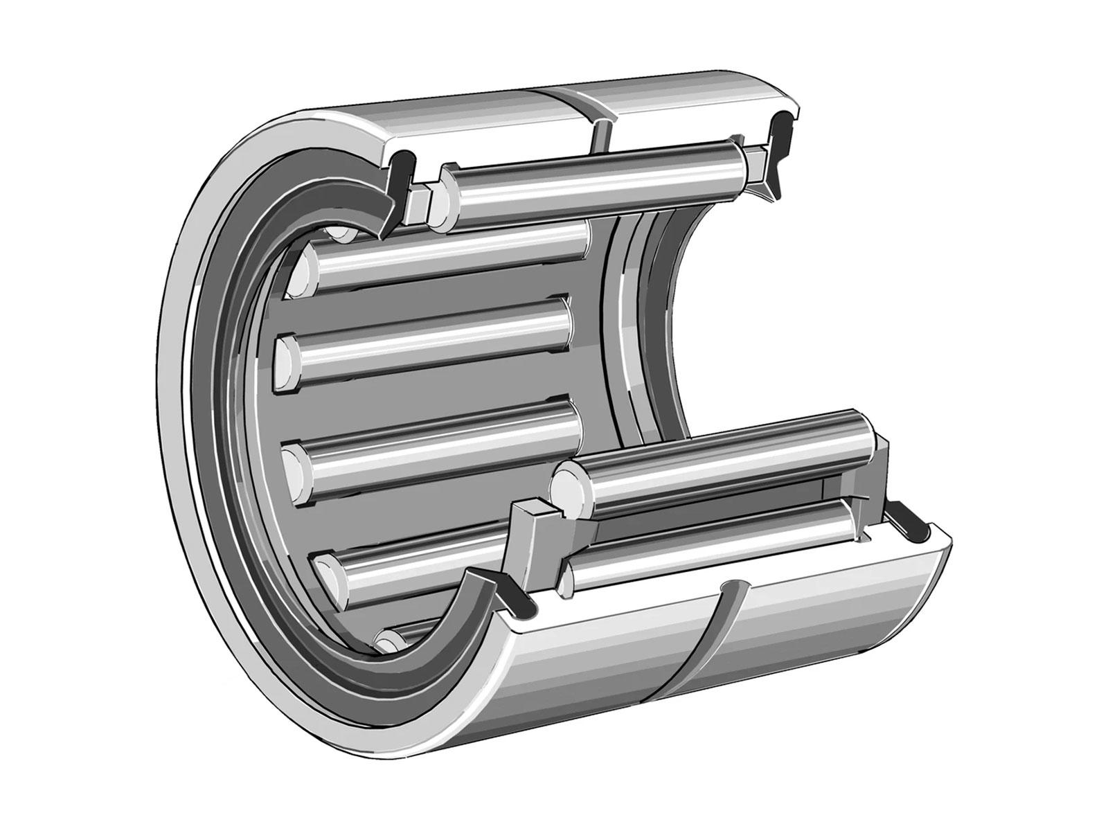 Enradet nåleleje uden inderring – pladsbesparende i radial retning; kræver hærdet/slebet aksel.
