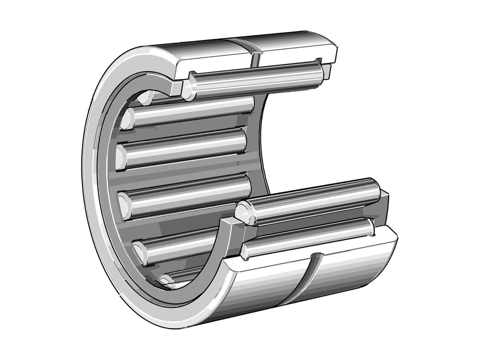 Enradet nåleleje uden inderring – pladsbesparende i radial retning; kræver hærdet/slebet aksel.