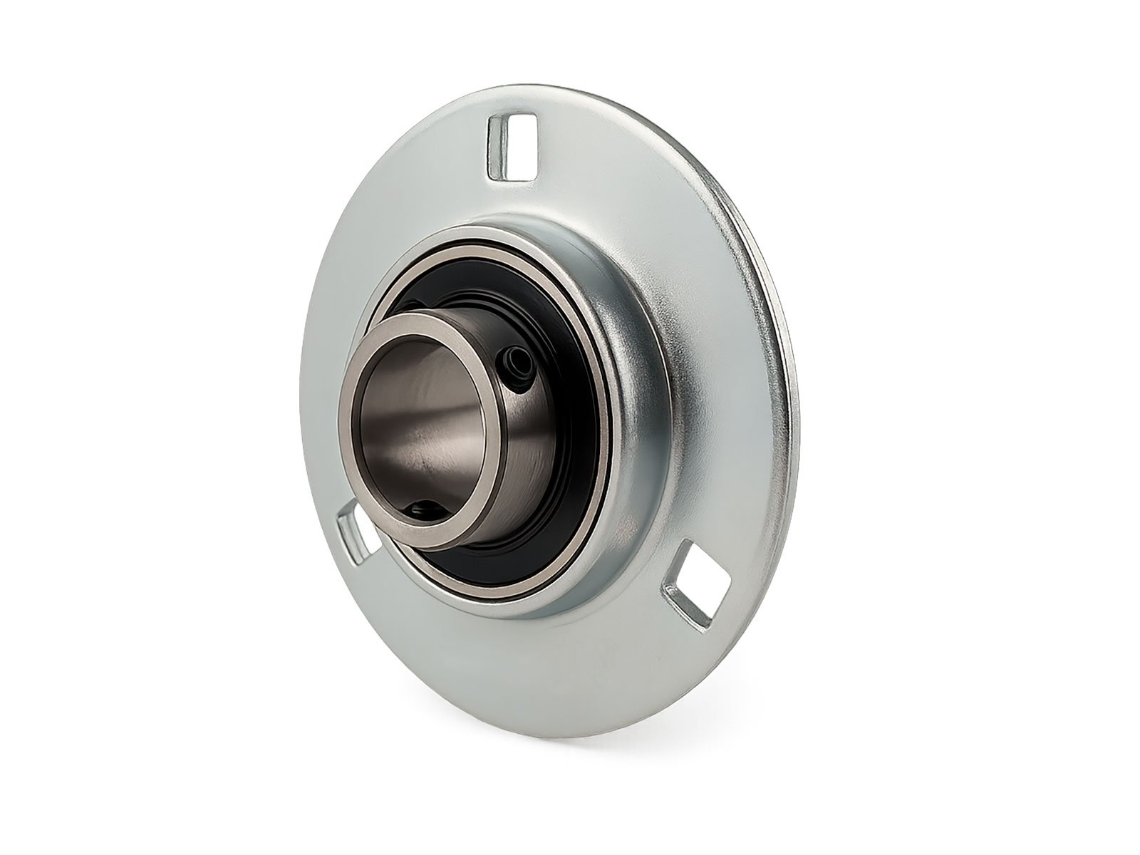 Rundt 3-bolts flangelejehus i presset stålblik med SB205 indsats