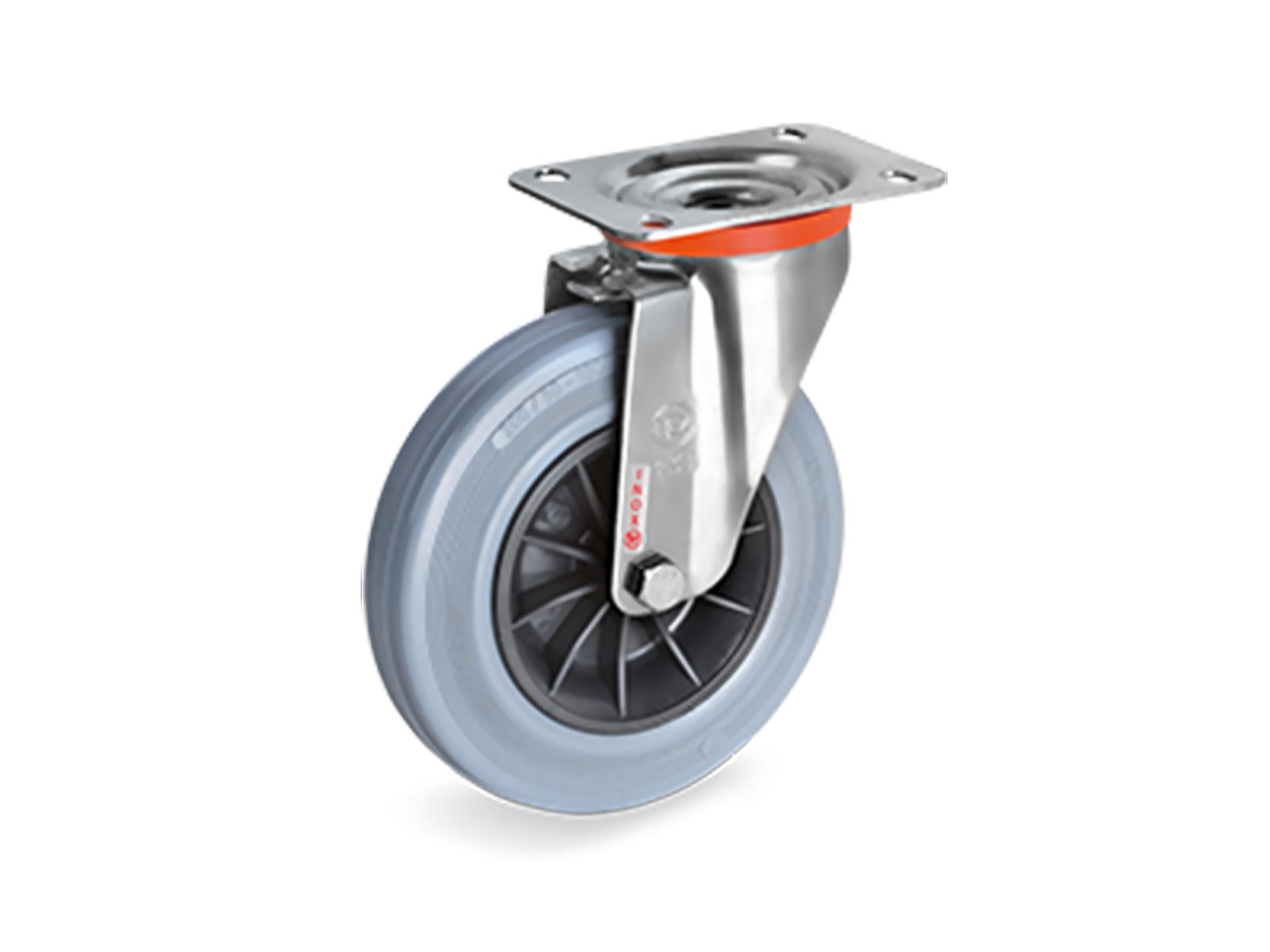 Tellurerota hjul i serie 22 er lavet til industriel brug, hvor slidstyrke og funktionalitet er vigtigt. Hjulene har en gummibane, der ikke efterlader mærker, og en hårdhed på Shore A 80. Kernen er fremstillet af polypropylen, som gør hjulene lette og stærke. Glidelejet er indbygget i hjulmaterialet og sikrer stabil vægtfordeling og lang holdbarhed.