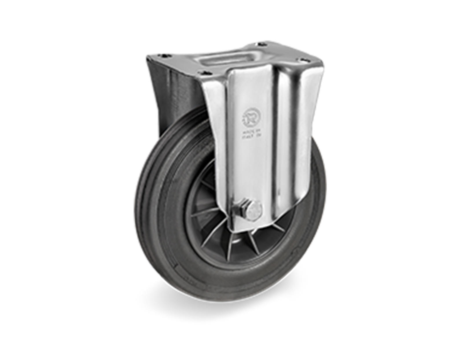 Tellurerota fast hjul med plade er udviklet til industrielle anvendelser, hvor driftssikkerhed og holdbarhed er vigtige krav. Hjulet har en gummibelægning med en hårdhed på 80 Shore A og et solidt fælg i polypropylen, hvilket giver stabil drift og lang levetid. Det faste beslag er fremstillet af zinkbelagt presset stål og giver god modstandsdygtighed mod slid og korrosion.