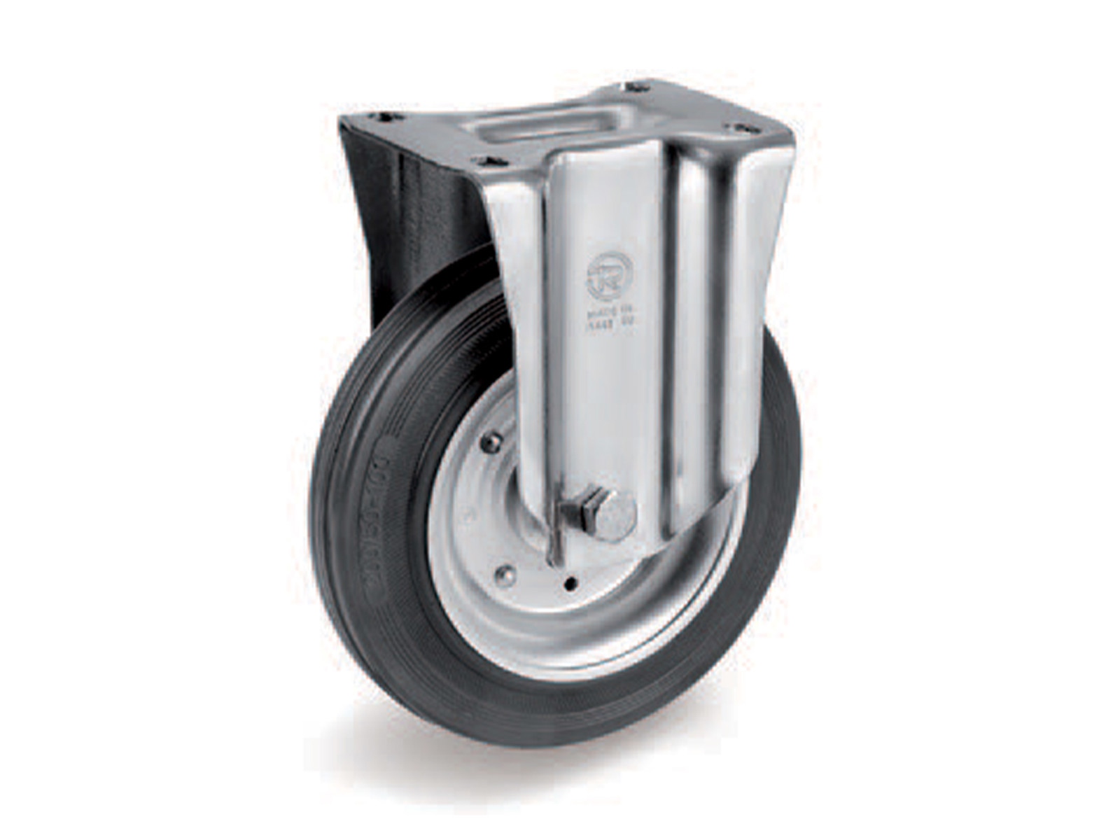 Hjulet har en selvsmørende bøsning af polyamid 6 med molybdændisulfidfedt, der sikrer en jævn og problemfri rotation. Det faste beslag er fremstillet af zinkbelagt stål, som beskytter mod rust og gør hjulet velegnet til krævende miljøer.