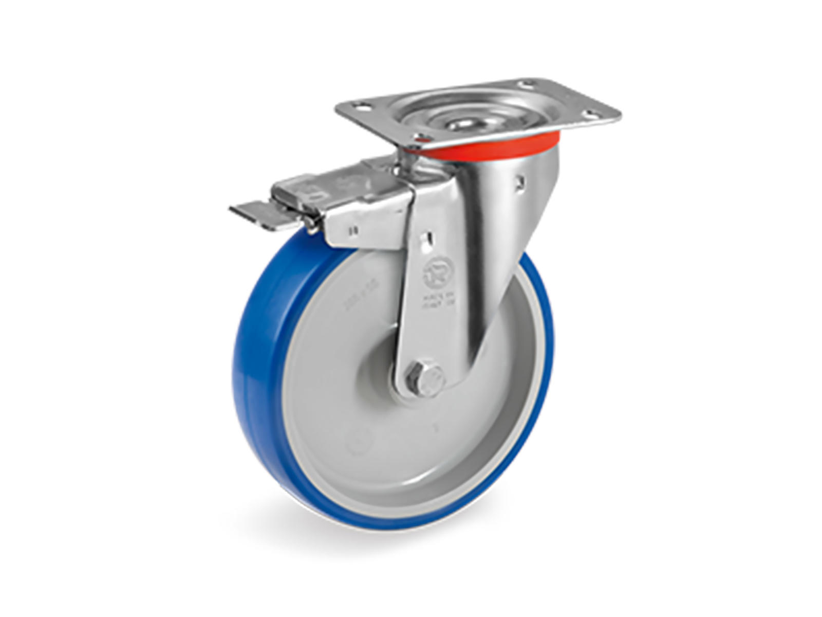 Dette hjul med drejbart beslag og bremse er velegnet til industrielle opgaver, hvor der kræves pålidelig funktion og holdbarhed. Hjulet har en belægning af polyurethan med en hårdhed på 85 Shore A, som sikrer god slidstyrke og stabilitet. Centeret er fremstillet af termoplastisk materiale, der gør hjulet modstandsdygtigt og holdbart.