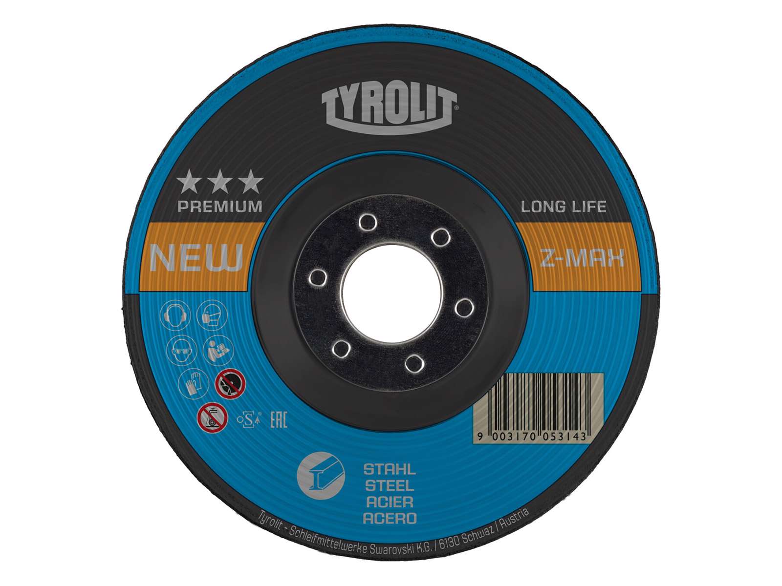 PREMIUM LONGLIFE skrubskiven fra Tyrolit er ideel til overflade- og kantslibning. Den er fremstillet til at levere en lang levetid og høj stabilitet, hvilket gør den særligt velegnet til bearbejdning af svejsesømme og kantsømme, især i rørlægning projekter. LONGLIFE-teknologien kombineret med et nyt bindingssystem sikrer en enestående aggressivitet, mens Comfort Start-funktionen forbedrer arbejdskomforten ved at garantere en jævn start på slibningen.