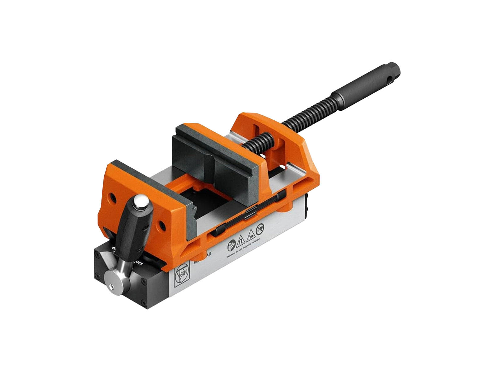 Fein Magnetskruestik sæt PMV100 tilbyder en innovativ løsning til fastspænding af forskellige komponenter på magnetiske overflader. Med en kæbebredde på 100 mm og en kompakt, kraftig permamagnet sikrer dette sæt optimal fleksibilitet og effektivitet på arbejdspladsen. Den unikke konstruktion gør det nemt at tilpasse skruestikken til forskellige arbejdssituationer uden brug af værktøj, hvilket giver en sikker og ordentlig arbejdsproces.
