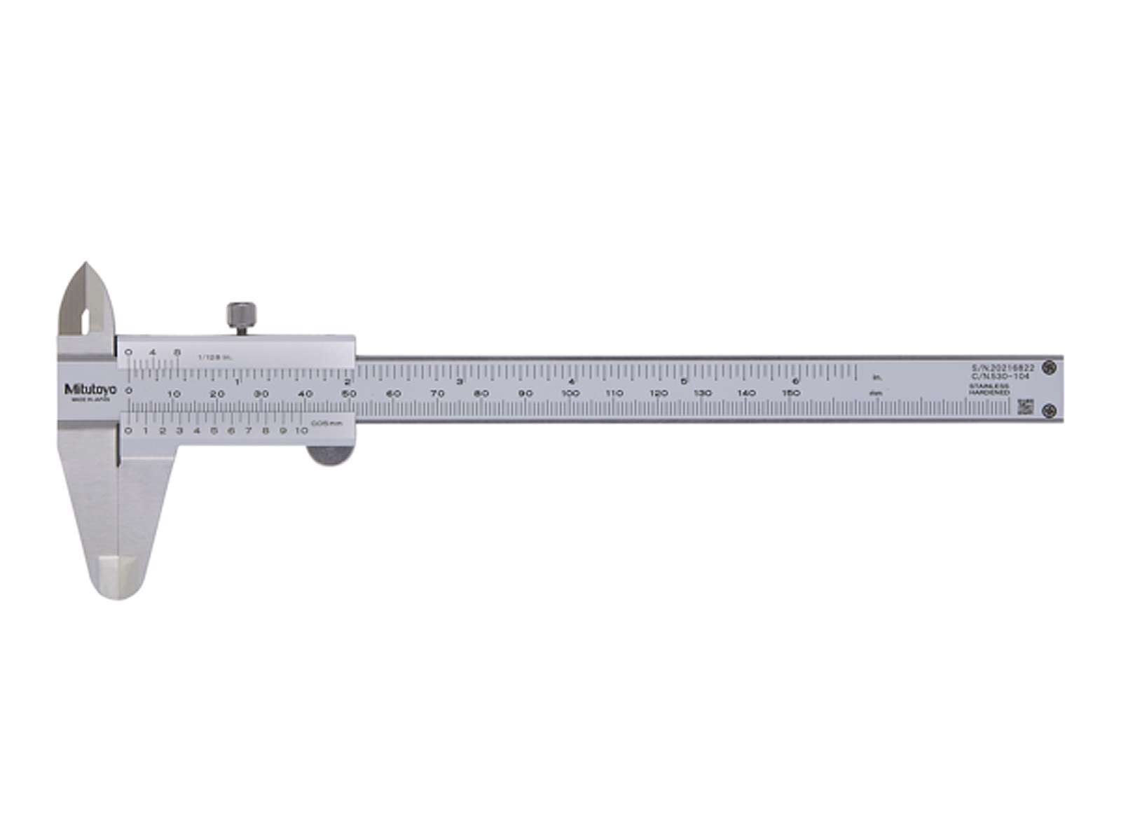 Skydelære udstyret med standard udvendige og indvendige kæber. Konstruktion af hærdet rustfrit stål med letlæselige, satinforkromede skalaer