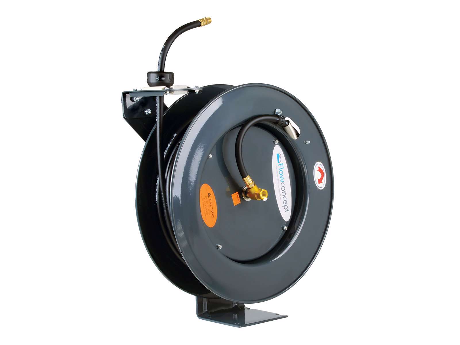 Epoxy pulverlakeret overfladebehandling. Styrearm med 4 retningsruller, justerbar i 9 forskellige positioner. Monteret med polymer slange - max. temperatur 50ºC
