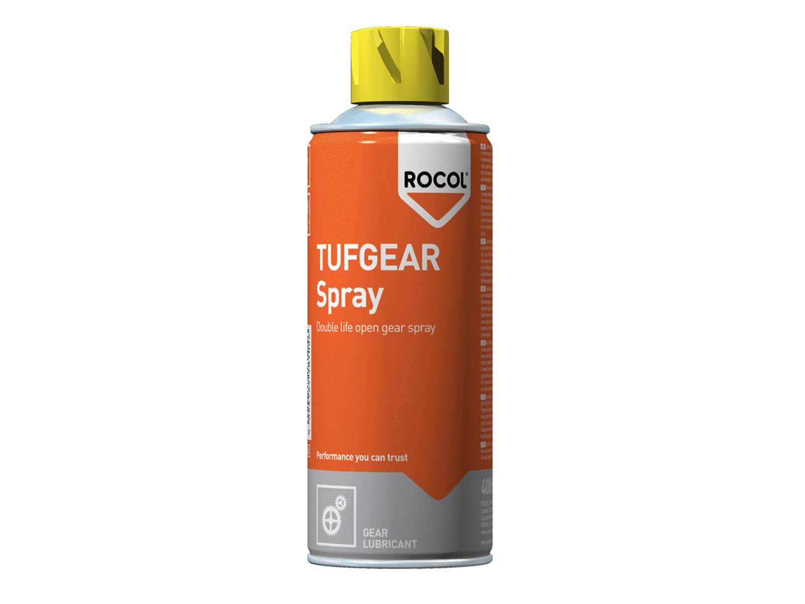 ROCOL TUFGEAR Spray er specielt udviklet til smøring af alle typer åbne gear snekker, kronhjul, tandstænger, spindler, skovlarme o.s.v.