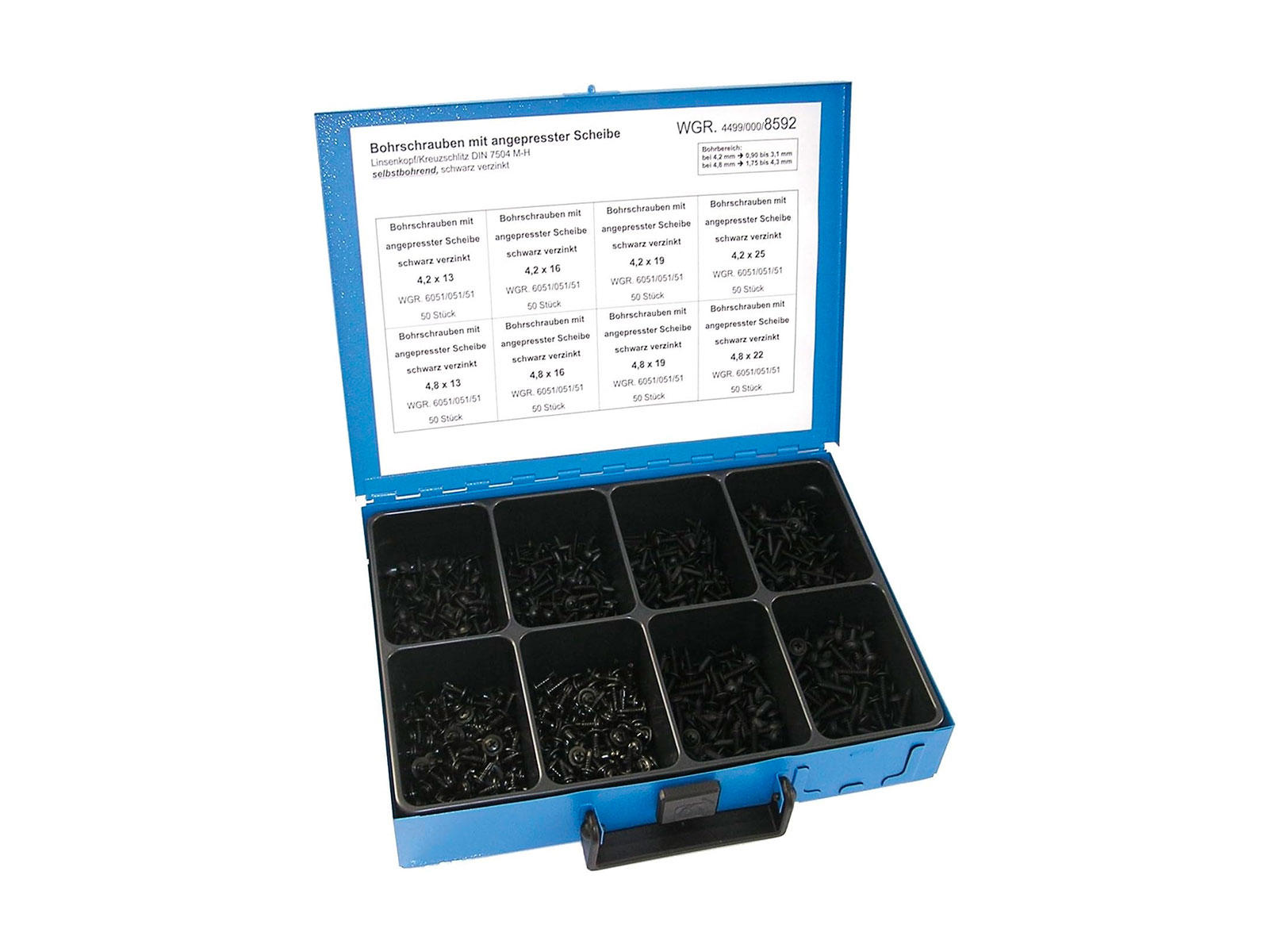 Dresselhaus sortimentæske med borskrue og flangeskive, DIN 7504 M-H, elgalvaniseret, 400 stk.
