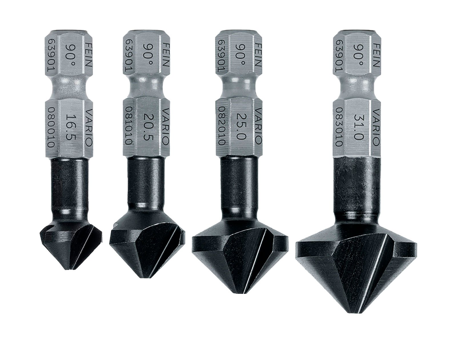 - Anvendelse: Forsænkning og afgratning med Fein Vario-system og kompatibel adapter
