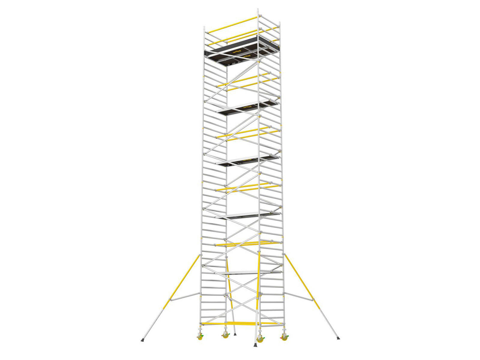 Få et førsteklasses rullestillads med dimensionerne 1,4 x 2,5 meter, som kombinerer robust konstruktion med brugervenlig design. Det er fremstillet med overlappende afstivning og indeholder velovervejede løsninger, der er dedikeret til at forbedre sikkerheden og arbejdsmiljøet. Dette rullestillads er fuldt udstyret, inklusiv platforme placeret hver anden meter, to topplatforme, fodlistesæt, justerbare hjul på 200 mm og støtteben. Den imponerende platformstørrelse måler 2,5 x 1,4 meter, og stilladset har en maksimal arbejdshøjde på 12,2 meter.