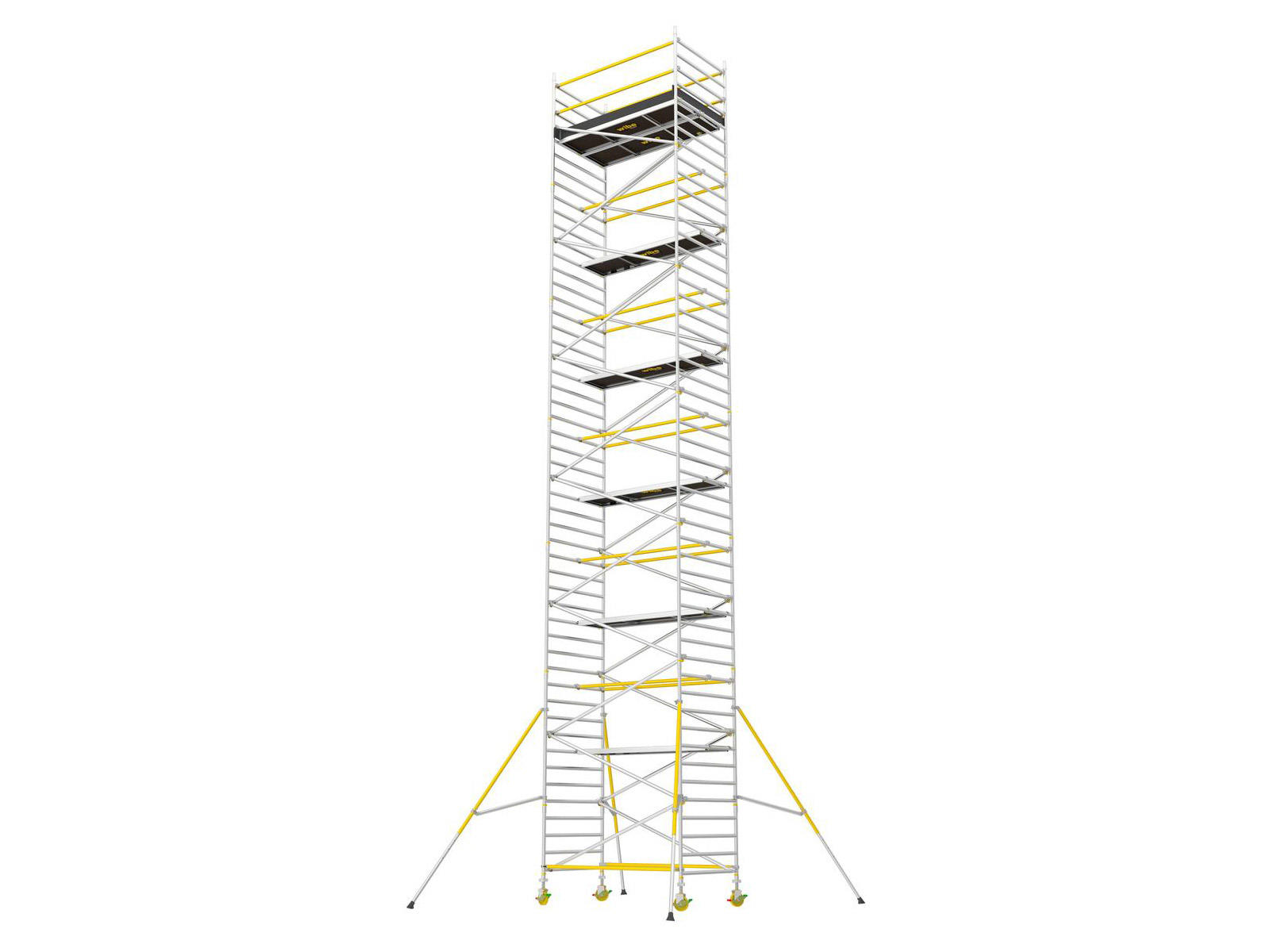 - Med en platformstørrelse på 2,5 x 1,4 meter og en arbejdshøjde på 14,2 meter, er dette stillads velegnet til et bredt spektrum af anvendelser.