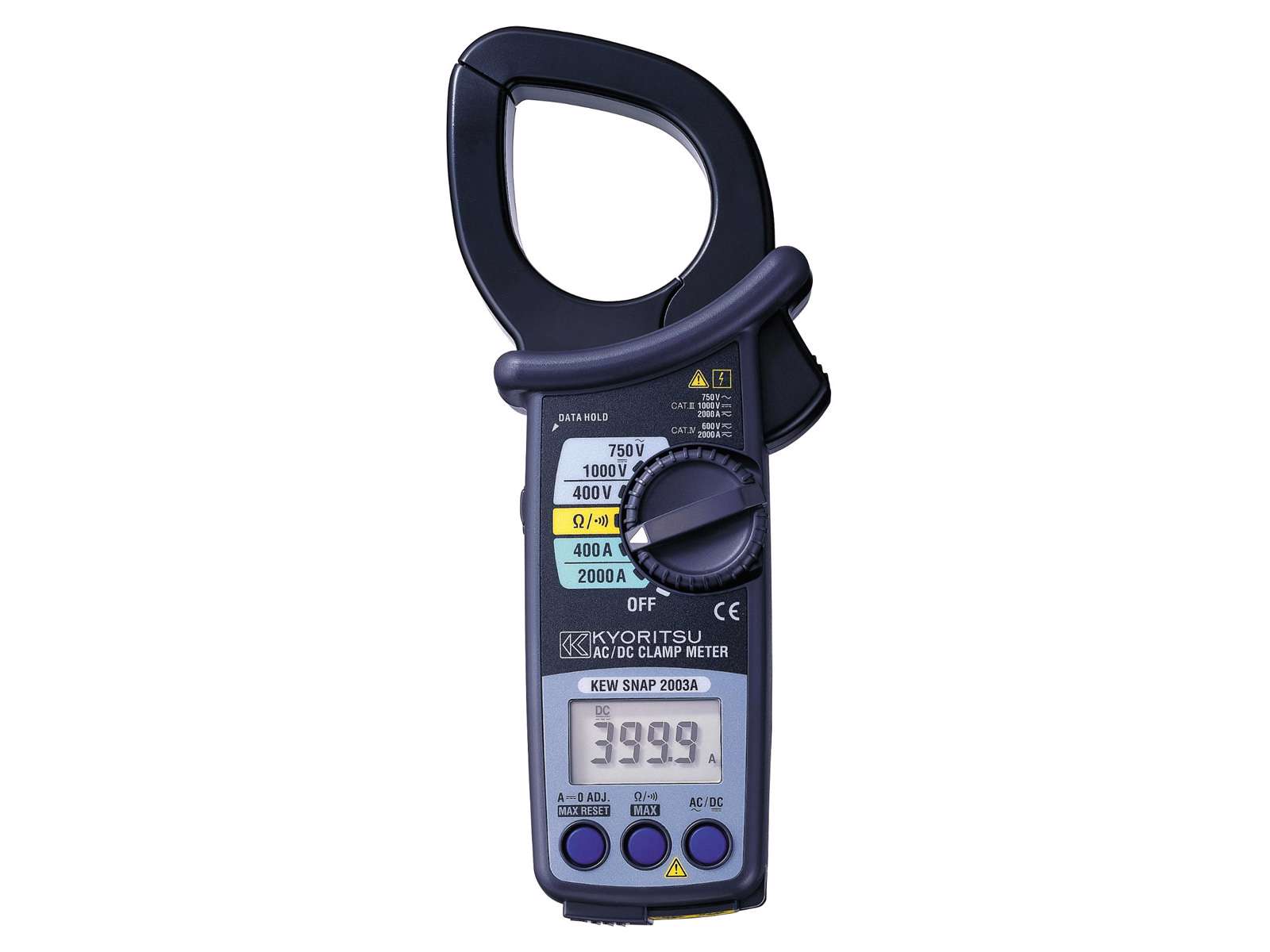 Kyoritsu 2003A er et digitalt tangamperemeter, der definerer nye standarder for sikkerhed og alsidighed inden for strømmåling. Dette robuste instrument er designet til at måle både AC og DC strømme med en kapacitet på op til 2000A. Det er også i stand til at måle AC/DC spænding, modstand og gennemgang. Kyoritsu 2003A kommer med avancerede funktioner såsom datahold for fastlåsning af måleresultater, maxhold til at registrere spidsværdier, automatisk nuljustering, autosluk, og en udgang til tilslutning af skriver eller lignende enheder. Dets design og funktioner gør det til et ideelt værktøj for professionelle, der kræver nøjagtighed og pålidelighed i deres måleudstyr.