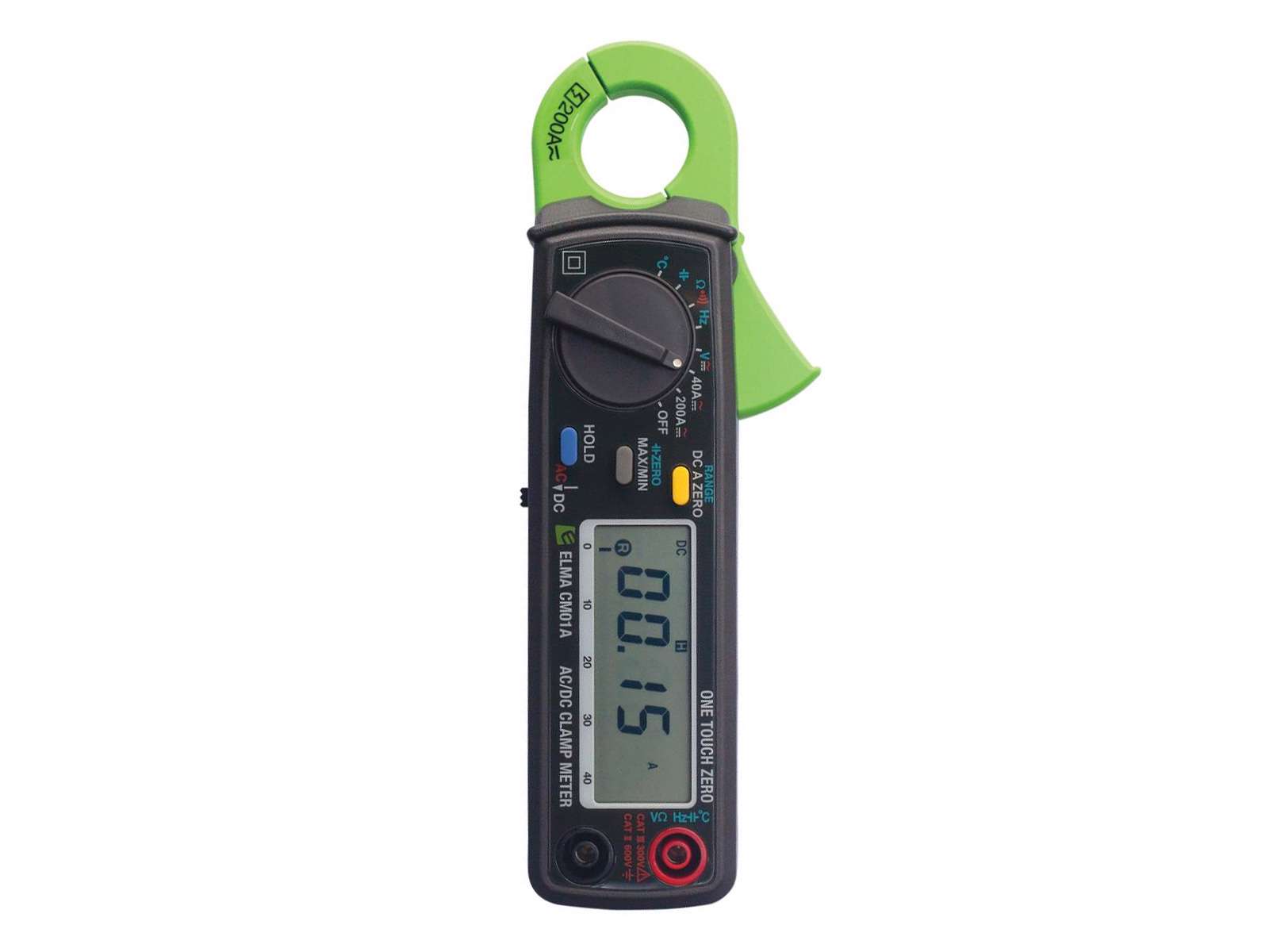 ELMA CM01A er en kompakt og handy tangamperemeter. Den har en ekstra høj opløsning med både et 3 3/4 cifret display og en analog bargraph. Enheden er udstyret med automatisk nuljustering, min/maks hukommelse, datahold og måler AC/DC strøm, AC/DC spænding, modstand, frekvens, kontinuitet og temperatur. Den opfylder IEC 61010-1 CAT II 600V og CAT III 300V standarderne. Enheden leveres komplet med en bæretaske, testledninger, en ledningstemperaturprobe, batteri og en brugsanvisning på dansk.