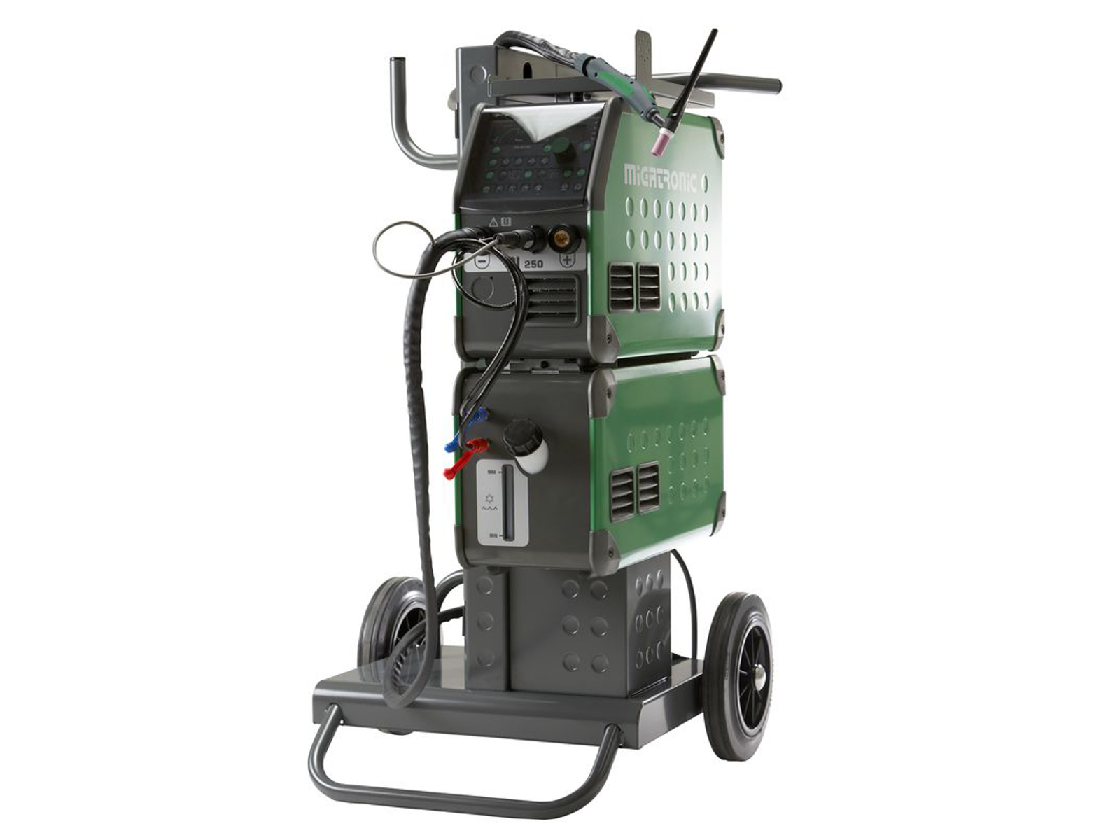Leveres med vogn fra Migatronic som en del af den samlede opsætning.