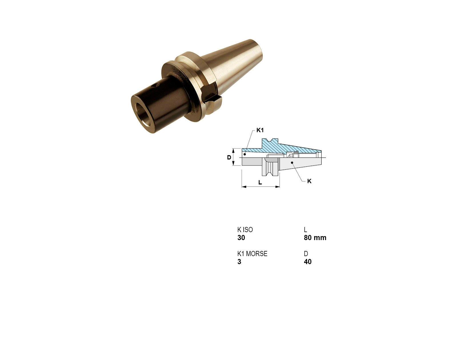 Canela værktøjsholder giver en pålidelig forbindelse mellem din maskine og værktøj. Denne adapter måler 80 mm i længden og er designet til at passe fra ISO 30 (JIS B 6339-BT) optag til MK3. Dette værktøjsfæste er ideelt til situationer, hvor intern køling ikke er nødvendig.