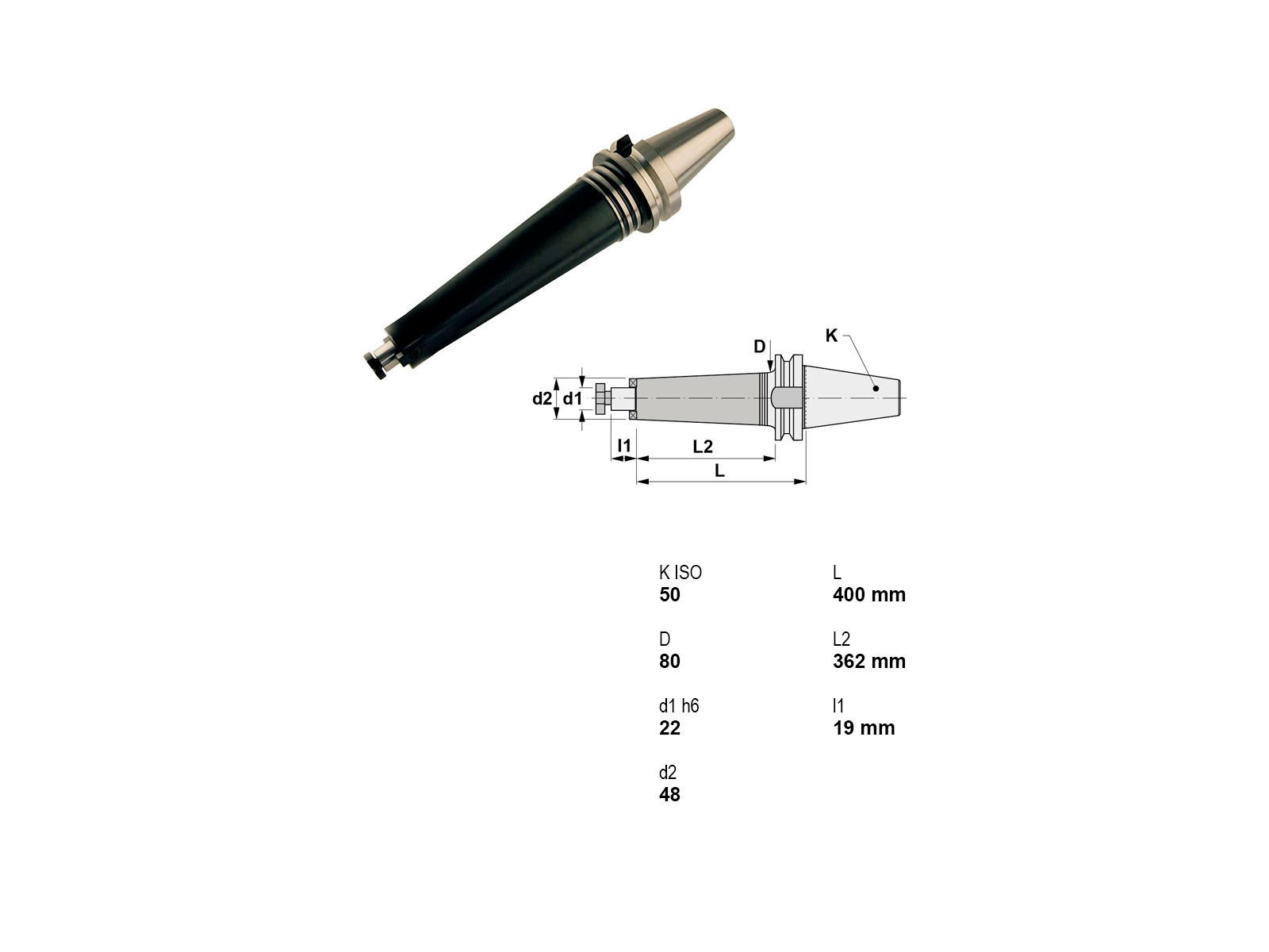 Fræsedorn Canela A20.160.50.22/400 er designet til præcisionsarbejde med en imponerende længde på 400 mm og en diameter på 80 mm. Denne model har et Ø22 mm værktøjsfæste i henhold til DIN 138 og en ISO 50 konus (JIS B 6339-BT). Dens særlige funktion inkluderer vibrationsdæmpning, hvilket sikrer en mere stabil og præcis bearbejdning, uden indbygget kølesystem.