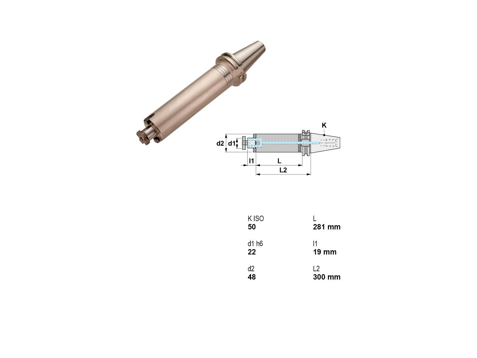 Canela fræsedorn er designet til at dæmpe vibrationer effektivt, hvilket sikrer præcise og rene snit. Med en længde på 300 mm og en diameter på 48 mm er den udstyret med et Ø22x19 mm værktøjsfæste (DIN 138) og en ISO 50 konus (DIN 69871-A), hvilket gør den kompatibel med en bred vifte af maskiner. Inkluderet kølesystem forbedrer ydeevnen under lange og krævende arbejdsopgaver.