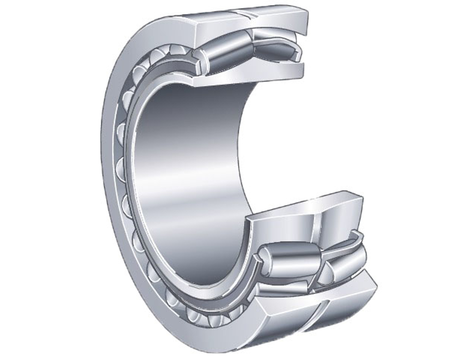 Sfæriske rullelejer er toradede, ikke-adskillelige enheder bestående af en massiv yderring med sfærisk løbebane, en massiv inderring og en holder med symmetriske tøndeformede ruller. Rullerne retter sig ind i den sfæriske løbebane på yderringen. Inderringen har konisk boring 1:12 (K). Lejerne kan optage store radiale og aksiale belastninger fra to sider og er egnede til meget store belastninger. E1 forbedret kinematik, optimerede overflader og materialer samt uden midterrib – højere dynamisk bæretal og væsentligt længere levetid.