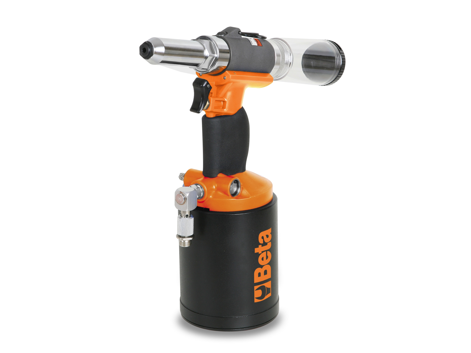 Beta 1946C7.8 er en automatisk sugende luft blindnittepistol, fremstillet til nitter i stål, aluminium, kobber og rustfrit stål med diametre fra 4,8 mm til 7,8 mm. Den har en spids, kegleformet dyse, der giver præcis placering, og et håndtag i kompositmateriale for optimal balance mellem vægt og håndtering. Med en trækstyrke på 16 900 N og en slaglængde på 22,5 mm sikres pålidelig montering selv under krævende forhold. Se også Beta 1946 for nitter Ø 2,4–4,8 mm eller udforsk hele vores udvalg af pneumatiske nitteværktøjer i kategorien luftnittepistoler.