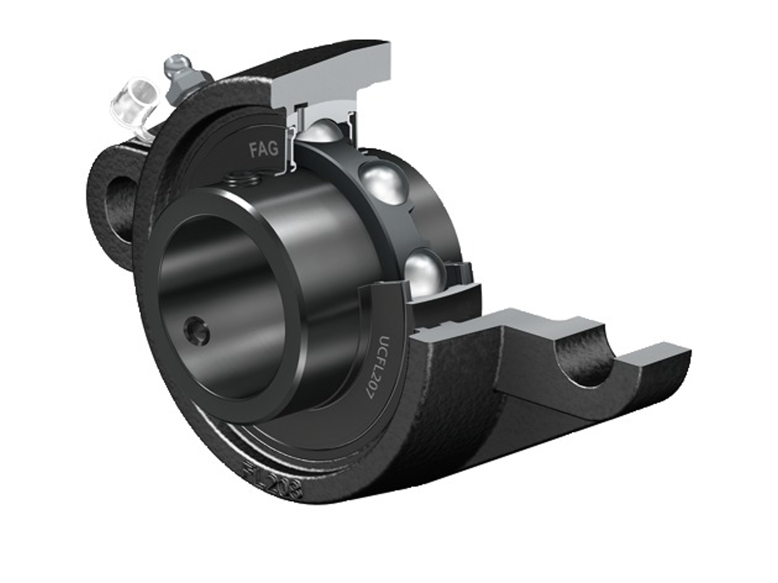 UCFL 205 er et ovalt flangeleje med forlænget inderring og fastgørelse med pinolskruer. Den sfæriske yderring sammen med den konkave husboring udligner statiske vinkelfejl ved montering. Inder- og yderringe samt slyngskiver er belagt med Durotect BS for grundlæggende korrosionsbeskyttelse.