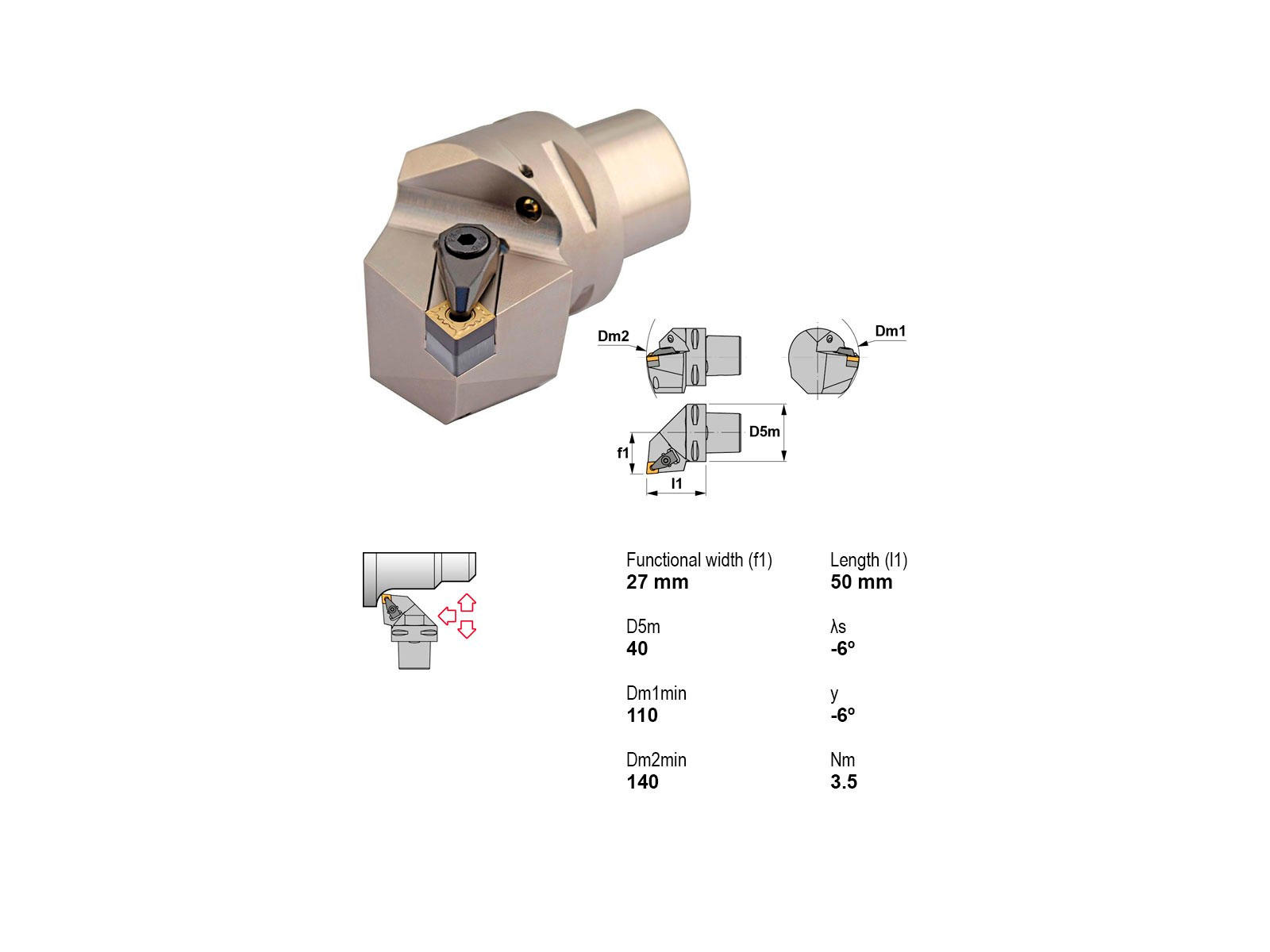 Canela stålholder PSC40-DCLNR27050-12 er designet til præcision og effektivitet i metalbearbejdning. Med sin robuste konstruktion og kompatibilitet med CN..1204.. platte er den ideel til højreindgreb og avanceret køling.