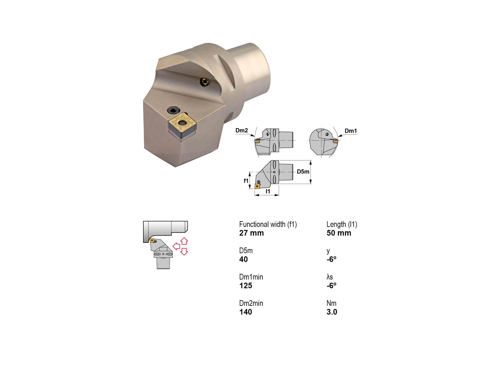 • Canela stålholder PSC40-PCLNR27050-16 er en præcisionsholder til drejning, der sikrer optimal ydeevne og lang levetid. Designet til højreindgreb og kompatibel med CNMG1606..-platter. Med integreret køling til effektiv varmeafledning er den ideel til krævende bearbejdningsopgaver.