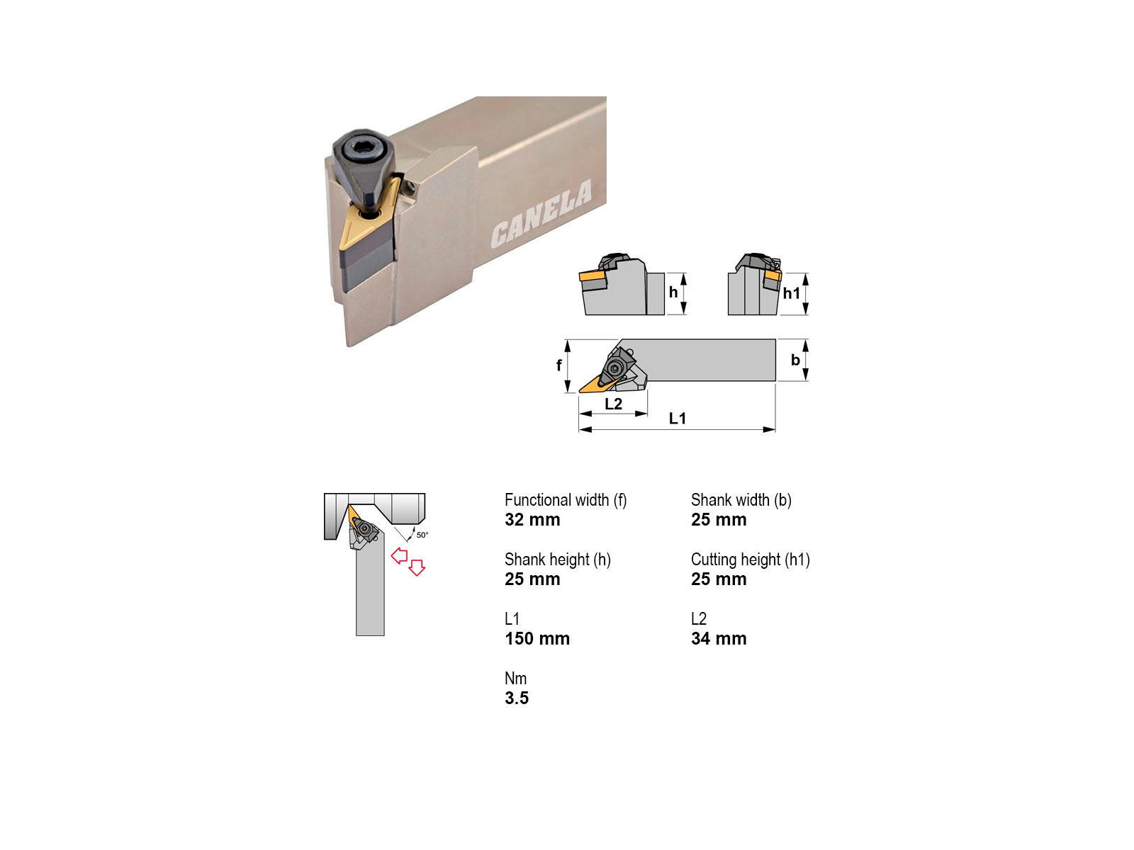 Canela DVJNR2525M16-A er en robust og præcist udformet stålholder, designet til effektiv bearbejdning og høj holdbarhed. Med et skaft på 25x25 mm og integreret køling sikrer denne holder optimal ydeevne og længere levetid. Ideel til højreorienterede indgreb med VNGP1604 platte.