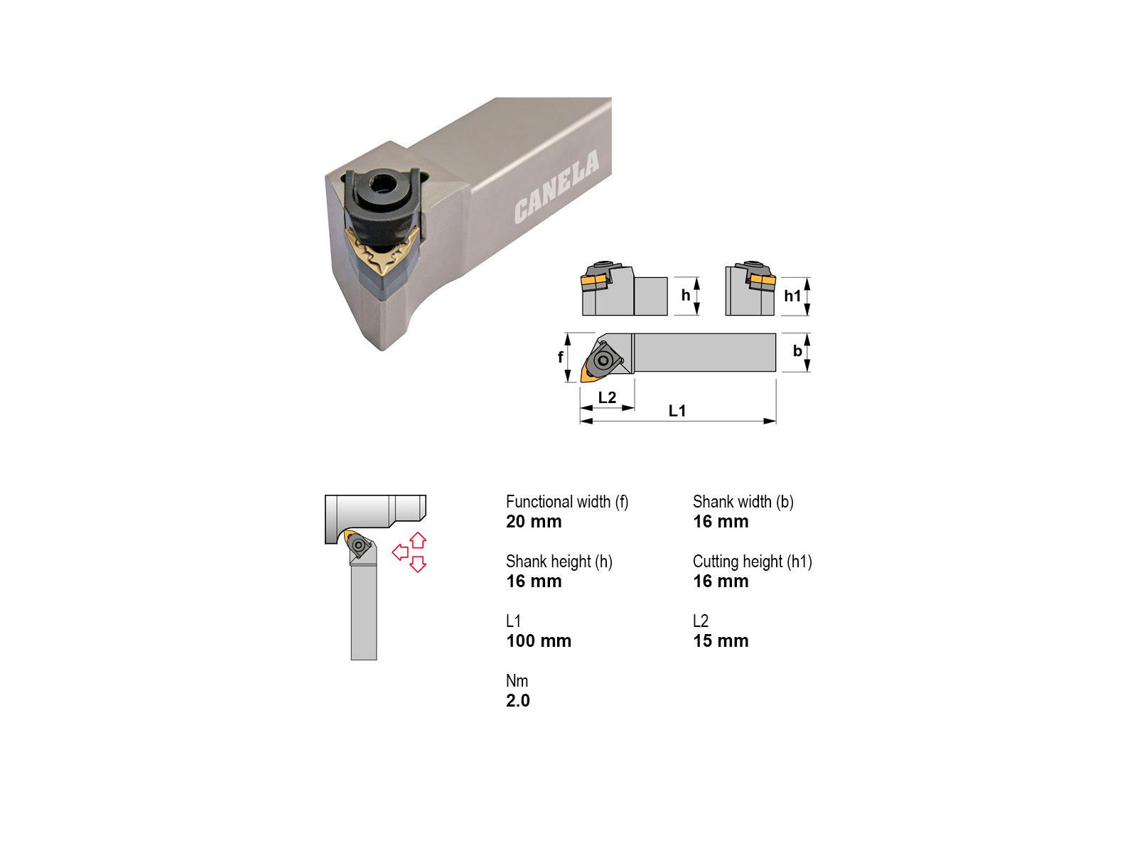 Canela stålholder MWLNR1616H06 er en højpræcisionsholder designet til skærende bearbejdning med WNMG0604.. platte. Med sin kompakte størrelse og robuste konstruktion sikrer den stabil og effektiv drift i højreindgreb. Ideel til professionel brug.