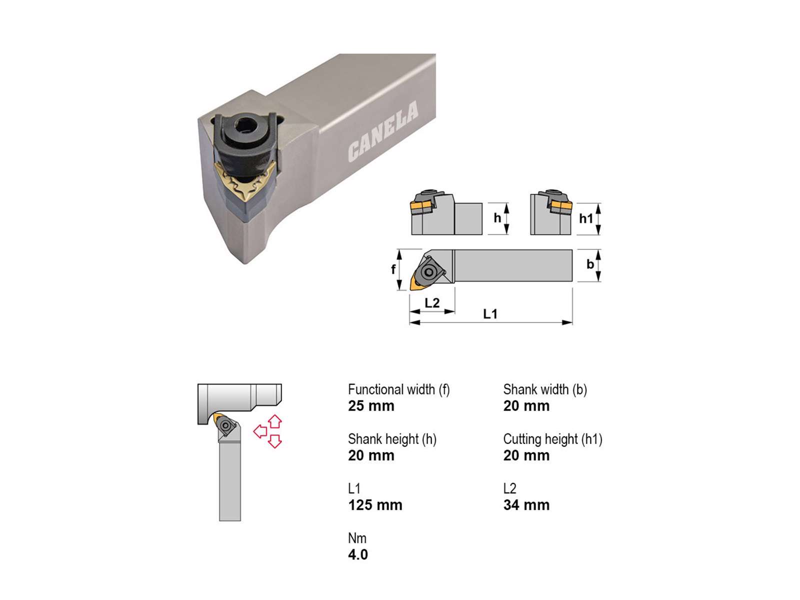 • Canela stålholder MWLNR2020K08 er en robust og præcisionsfremstillet holder designet til højreindgreb med skærtypen WNM..0804.. Uden køling sikrer den pålidelig ydeevne i krævende bearbejdningsmiljøer.