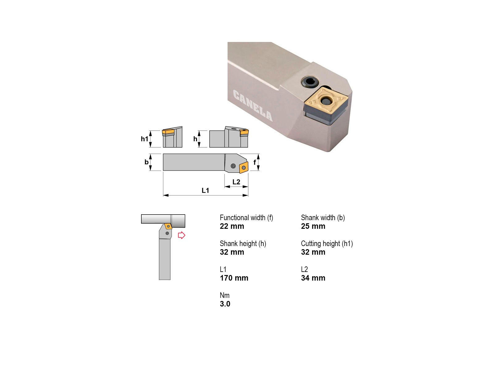 Canela stålholder PCBNL3225P16 er en robust og præcis skærehovedholder designet til professionel bearbejdning. Den sikrer stabilitet og pålidelighed i skæreprocesser og er ideel til præcisionsarbejde med venstre indgreb.