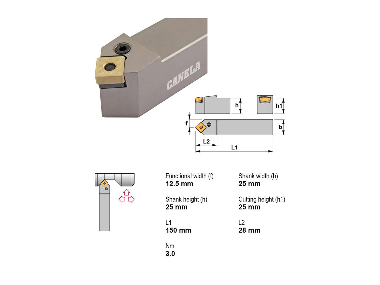 • Canela stålholder PSDNN2525M12 er en robust og præcisionsfremstillet holder til drejebænke. Med sit kompakte design og neutral indgreb sikrer den stabilitet og nøjagtighed under bearbejdning. Ideel til industrielle behov.