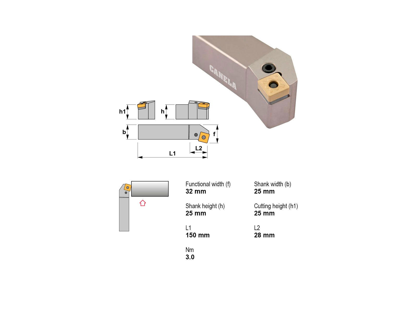Canela stålholder PSKNL2525M12 er en robust og præcisionsdesignet holder til metalbearbejdning. Med en solid opbygning sikrer den optimal stabilitet og ydeevne ved brug af SNM..1204.. platte. Perfekt til venstreindgreb.