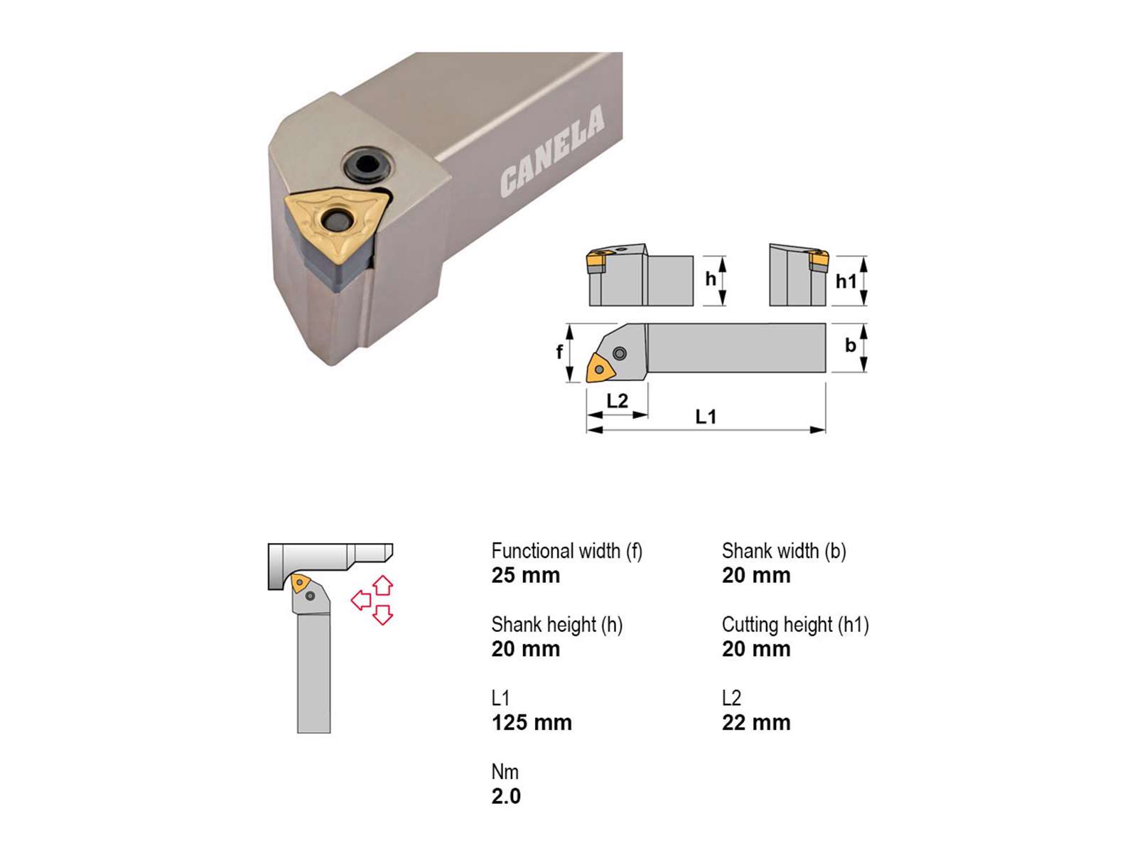 Canela stålholder PWLNR2020K06 er en robust og præcis værktøjsholder designet til professionelle drejeopgaver. Med høj præcision og holdbarhed er den ideel til effektiv bearbejdning. Uden køling og med et ergonomisk design, der sikrer nem brug.