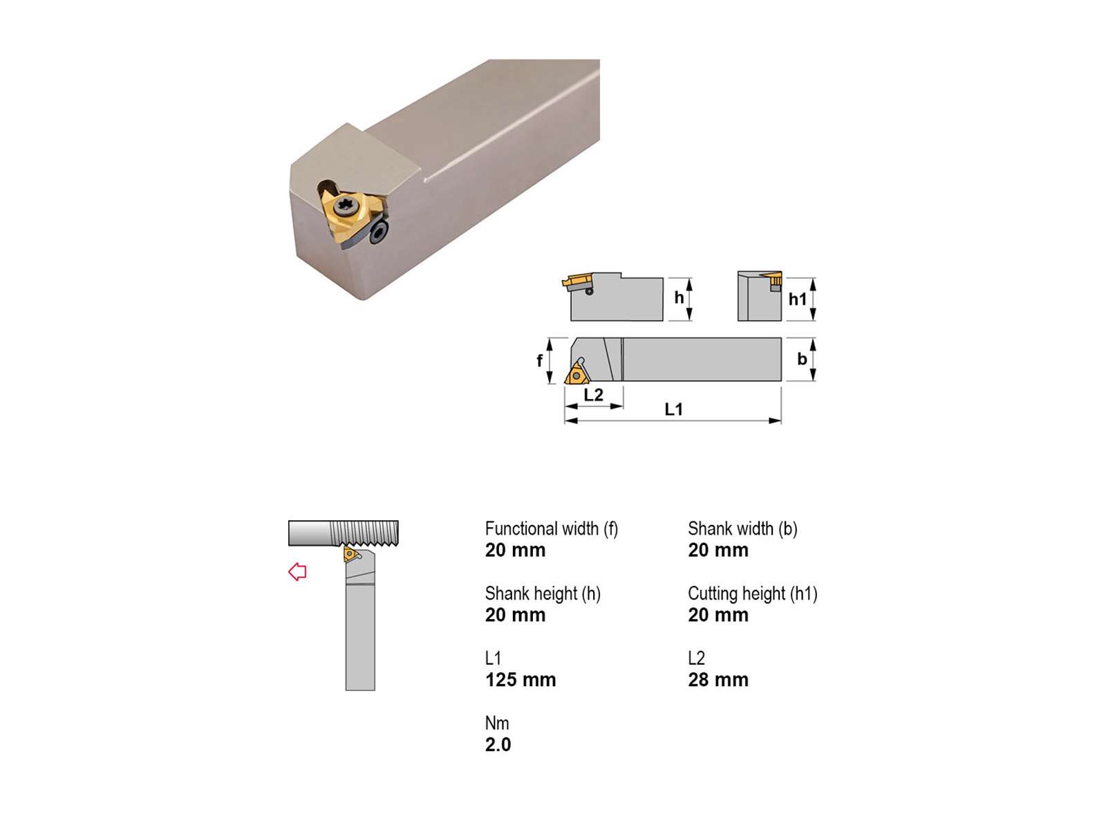 Canela STANR2020K16 er en kompakt og præcis stålholder til drejning med højreindgreb. Den er kompatibel med 16ER-gevindplatter og leverer stabil ydeevne uden behov for køling, velegnet til industrielle drejeopgaver med krav til nøjagtighed og stivhed.