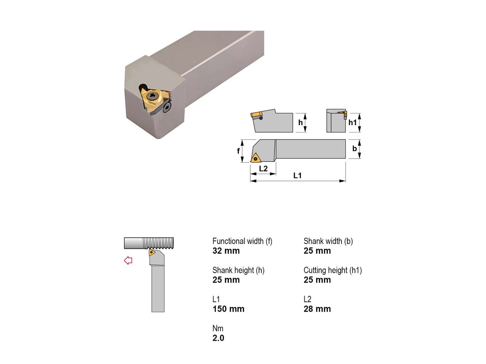 Canela STXNR2525M16 er en robust stålholder velegnet til bearbejdning med vendeskær af typen 16ER.. Den leveres uden køling og med højreindgreb, hvilket gør den optimal til applikationer, hvor intern køling ikke er nødvendig. Dens faste 25x25 mm skaft giver stabilitet ved skærende operationer.