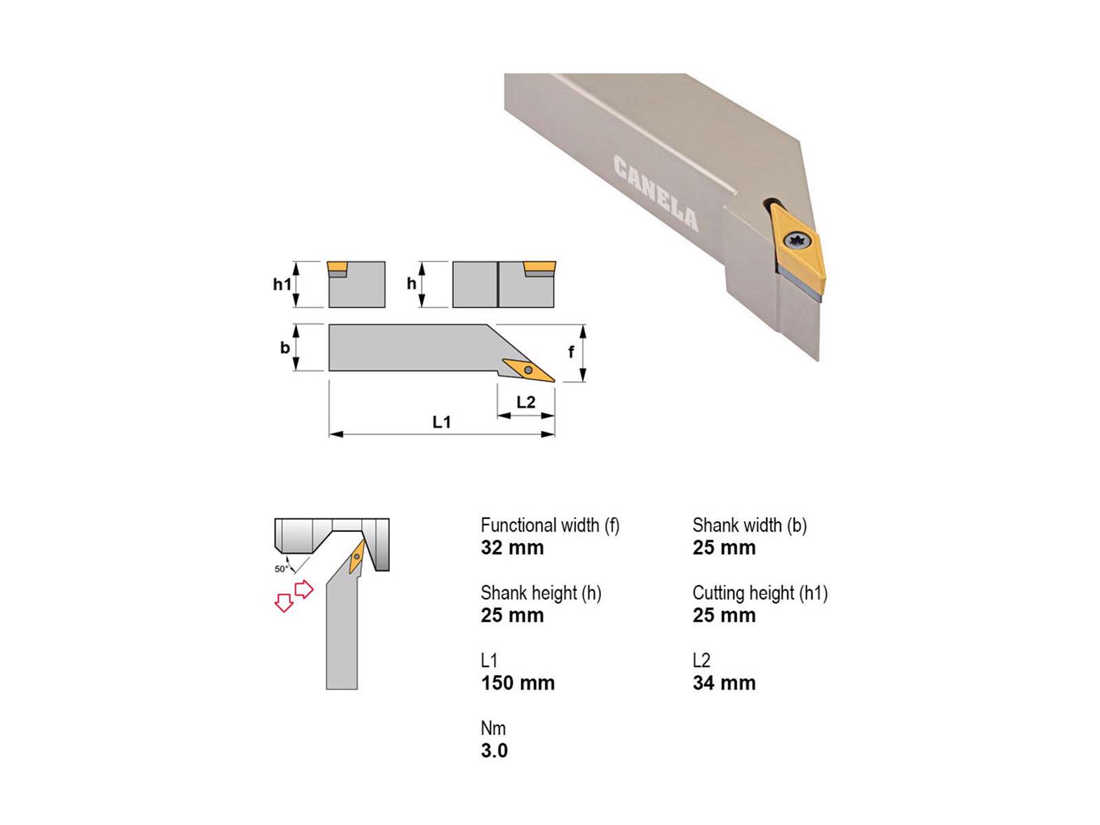 Canela SVJBL2525M16 er en kompakt stålholder til drejning uden køling, optimeret til præcis bearbejdning med VBMT1604-skær. Med venstreskærende geometri og robust skaft er den velegnet til krævende indvendig og udvendig drejning i stål og rustfri materialer.