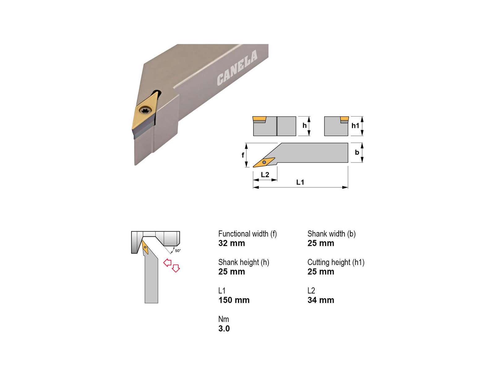 • Canela SVJCR2525M16-A er en præcisionsstålholder til højrehåndsindgreb og anvender plattetype VC..1604.. Den er uden køling og konstrueret i en kompakt 25x25 mm skaftdimension, hvilket gør den velegnet til stabile drejeopgaver i manuelle og CNC-styrede applikationer.