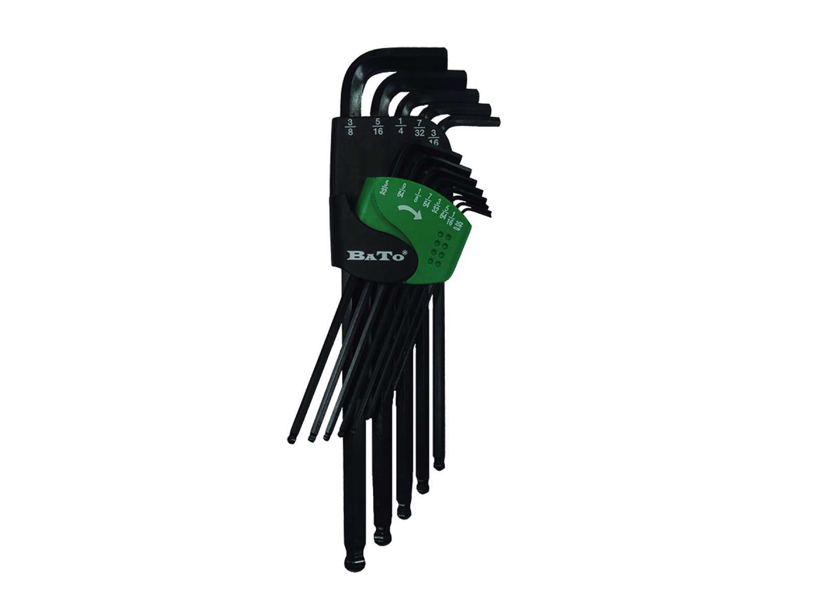 Dette sæt af BATO unbraconøgler, model "Ekstra Lang", indeholder 13 nøgler i forskellige størrelser, fra 0,05" til 3/8". Det er designet for at nå ind i dybere eller mere snævre områder, hvor standard unbraconøgler ikke kan nå. Sættet er en essentiel del af værktøjskassen for professionelle, der kræver præcision og rækkevidde i deres arbejde.