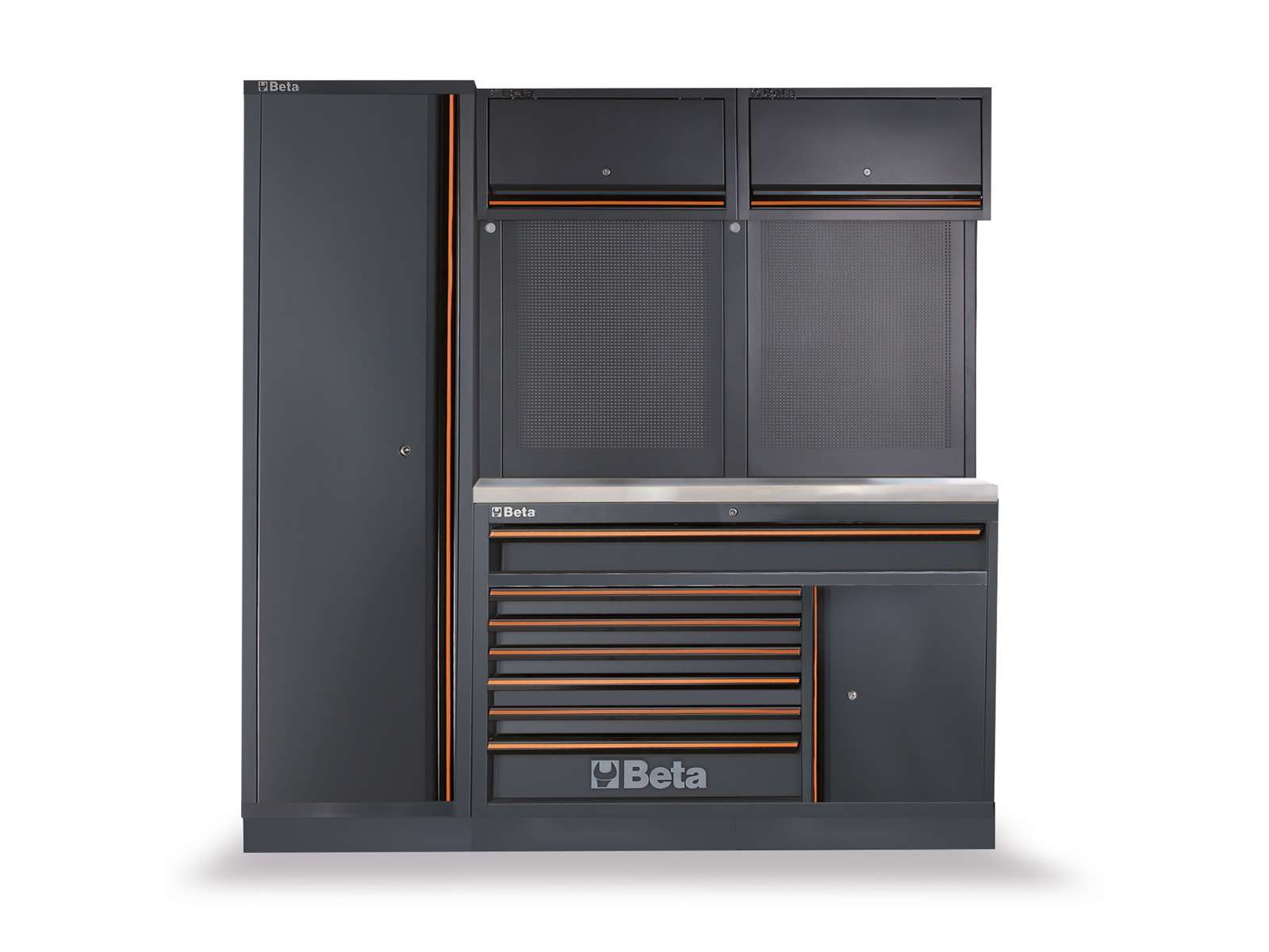 Værkstedsindretning C45PRO EX repræsenterer en fuldendt løsning til optimering af dit arbejdsområde. Med en skarpt defineret ramme forbedret gennem avancerede tekniske justeringer, dette system leverer en uovertruffen fusion af kvalitet og økonomisk fornuft.