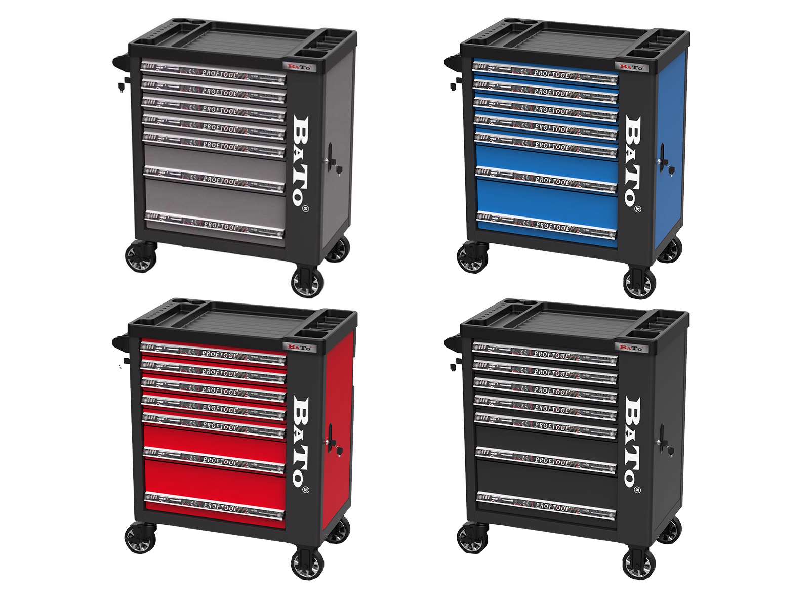 Optimer dit værksted med en værktøjsvogn, der har 7 skuffer og et praktisk endeskab. Værktøjsvognen inkluderer 3 skuffer fyldt med 157 dele, der er sikkert opbevaret i formstøbte EVA-skumindsatser.